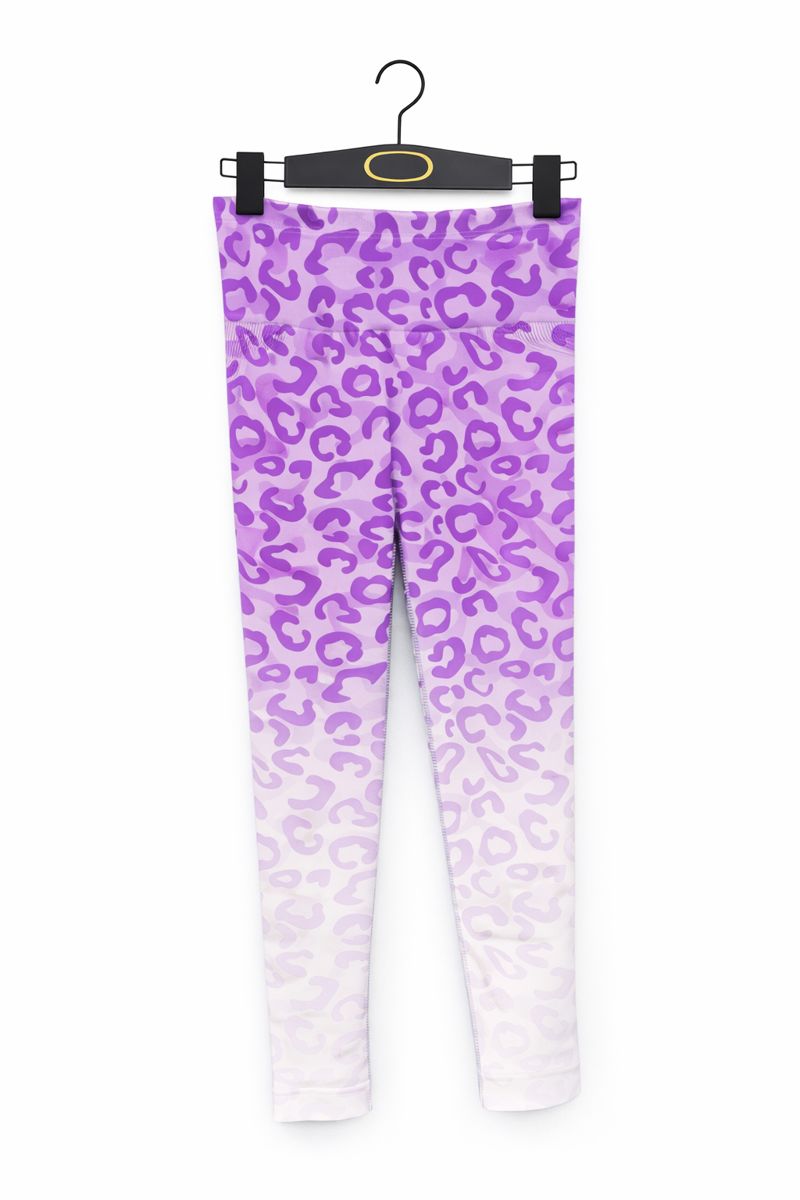 لگ ورزشی زنانه فاق بلند پشت چیندار طرح پلنگی بنفش گرادینتی | لگ جذب باشگاهی