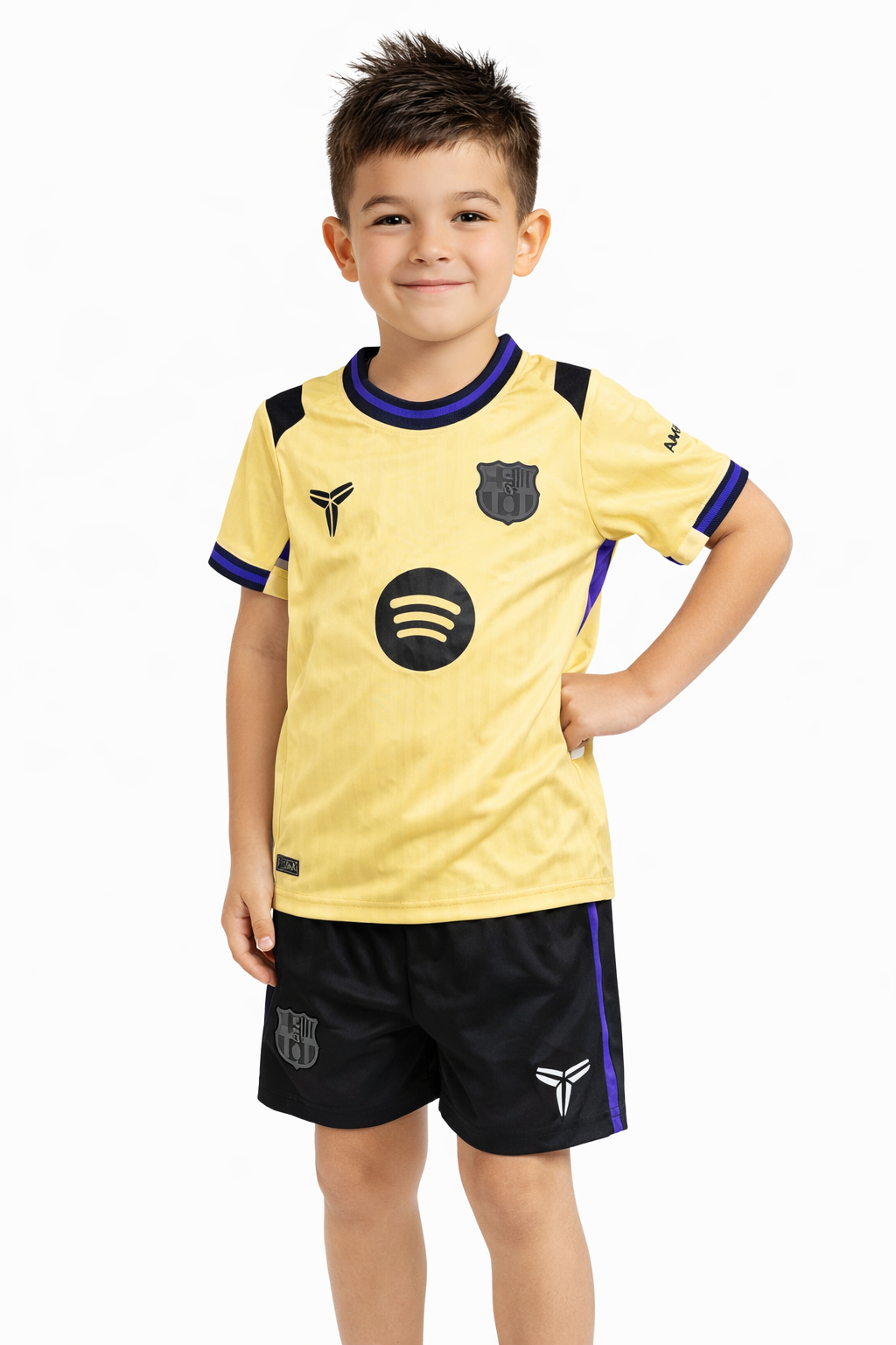 با کیت دوم بارسلونا، استایل حرفهای فوتبالی رو به کوچولوها هدیه بده ⚽ترکیب خاص رنگ زرد و مشکی، الهامگرفته از طراحی رسمی باشگاه، مناسب بازی، تمرین و استفاده روزمره.سبک، خنک و راحت؛ دقیقاً همونی که یه فوتبالیست کوچیک لازم داره 💛🖤انتخابی عالی برای طرفدارای واقعی Barça.