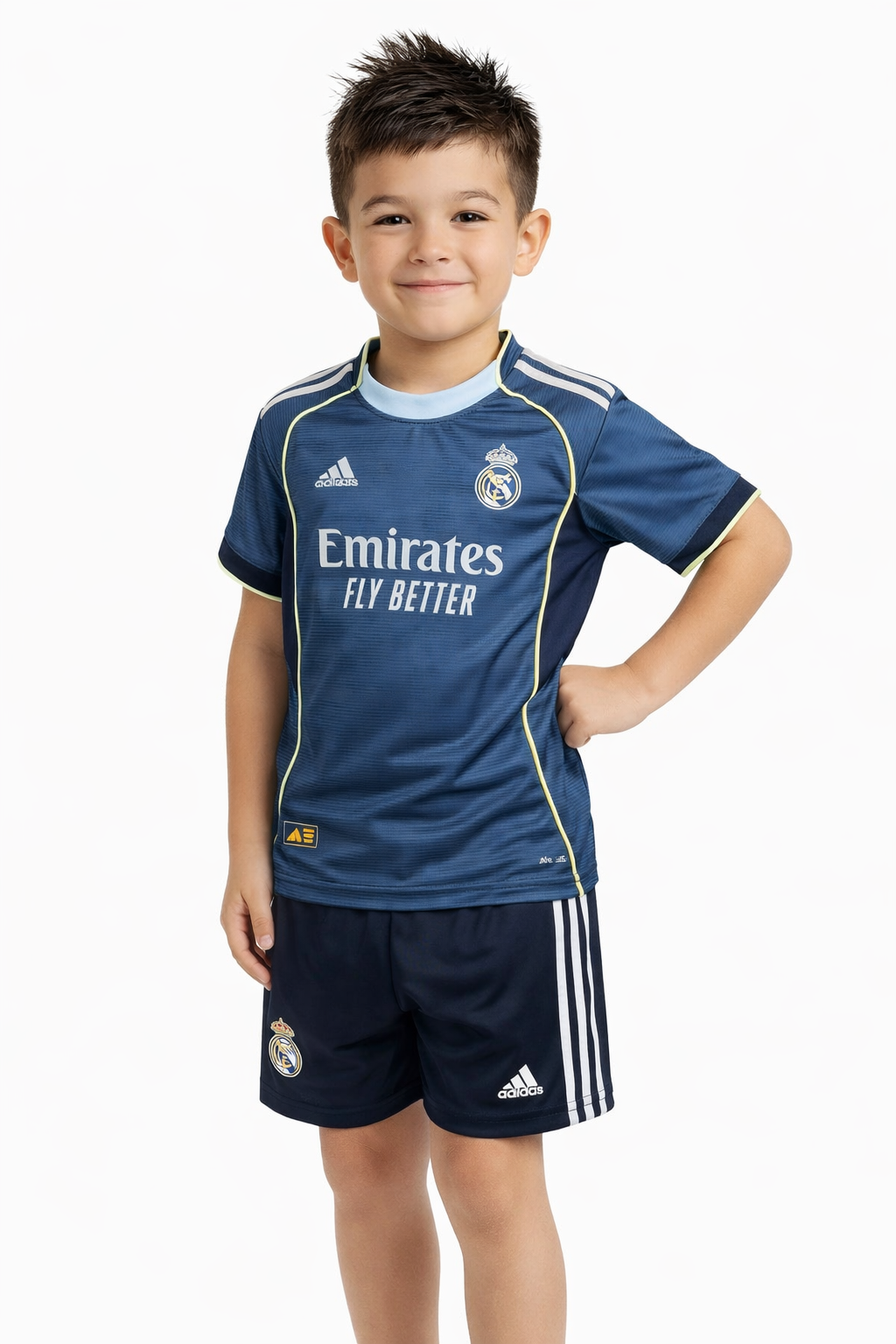 کیت بچگانه رئال مادرید، انتخابی خاص برای هواداران کوچیک که عاشق کهکشانیها هستن ⚽طراحی شیک سرمهای با جزئیات سبز نئونی، دقیقاً مطابق نسخه اصلی بازیکنان 👕سبک، راحت و مناسب بازی، تمرین و استفاده روزمره 💙یه هدیه عالی برای طرفدارای واقعی رئال مادرید ✨ بازیکنانی که این کیت را پوشیدهاندجود بلینگهام، وینیسیوس جونیور، رودریگو، لوکا مودریچ، فدریکو والورده