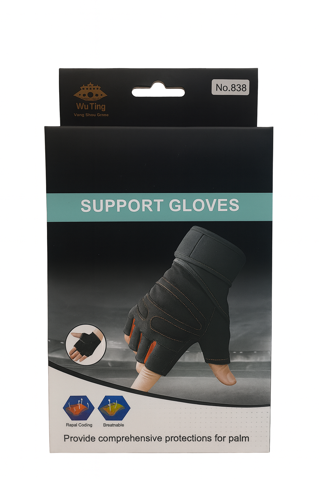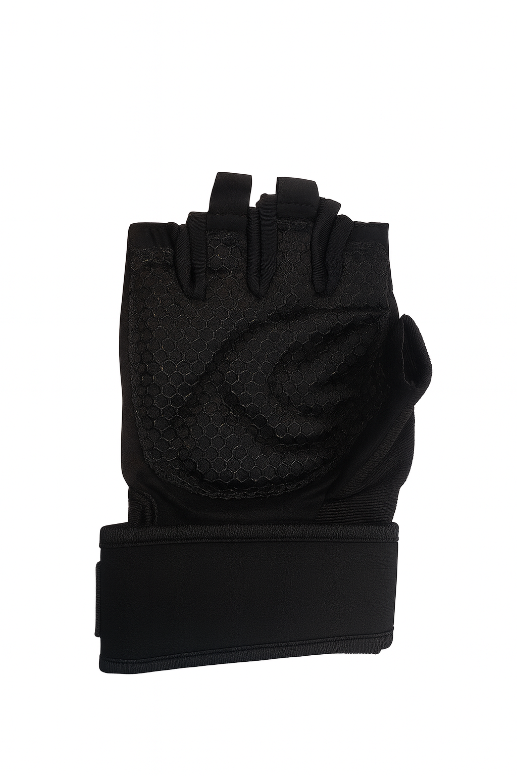 دستکش بدنسازی نیم‌انگشتی مشکی با مچ‌بند مقاوم مدل WU TING