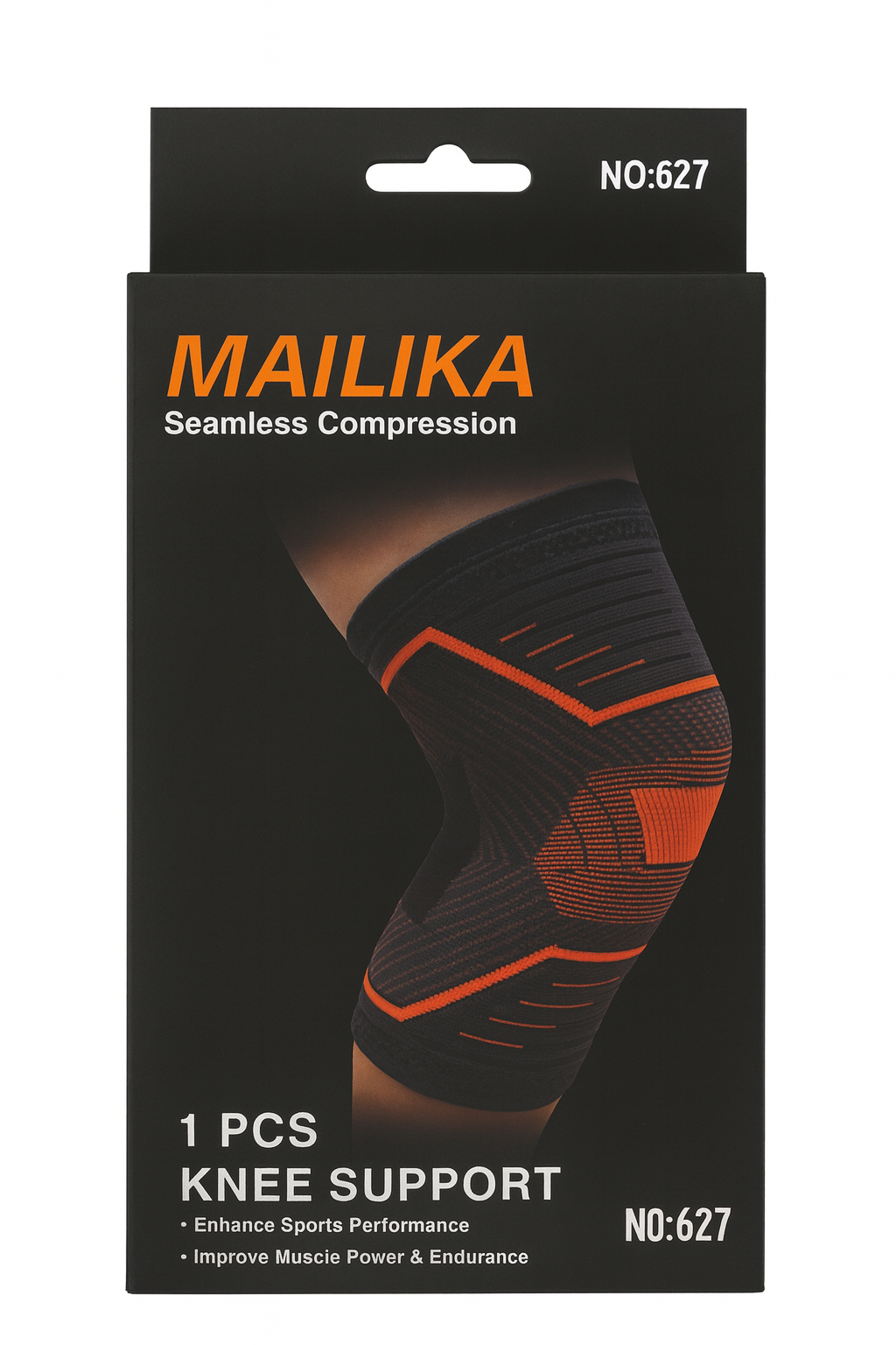 🦵 زانوبند MAILIKA مدل 627 با طراحی بدون درز و پارچه کشی فشاری، پشتیبانی کامل از مفصل زانو را فراهم می‌کند.