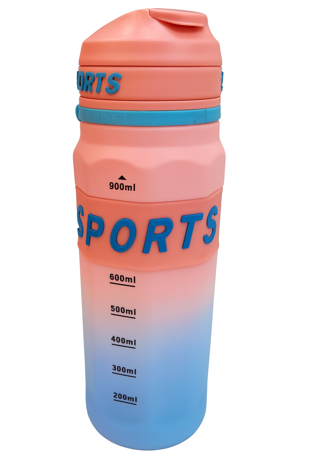 این بطری ورزشی 900 میلی‌لیتری با طراحی اسپرت و رنگ گرادیانی جذاب، انتخابی عالی برای باشگاه، پیاده‌روی و استفاده روزمره است. 💧