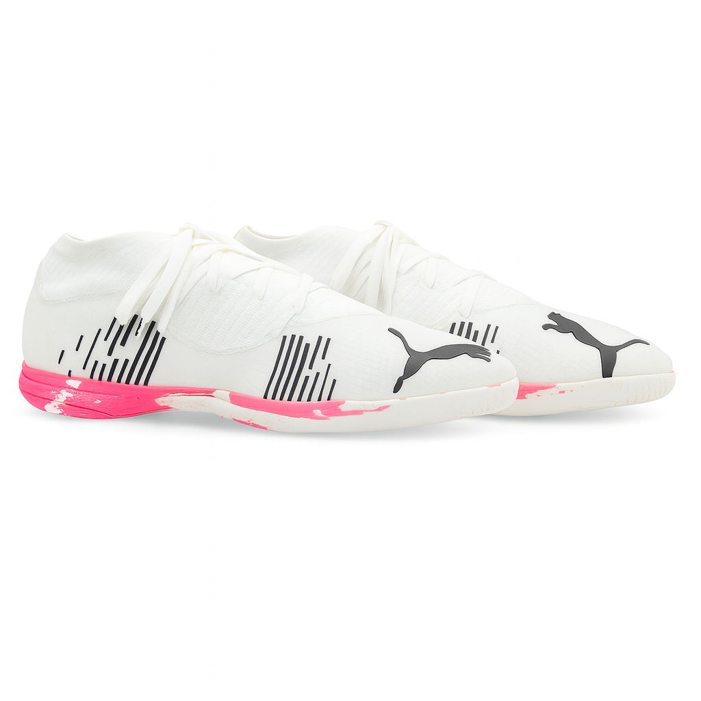 کفش سالنی Puma Future Z سفید با طراحی مدرن و جزئیات صورتی نئونی