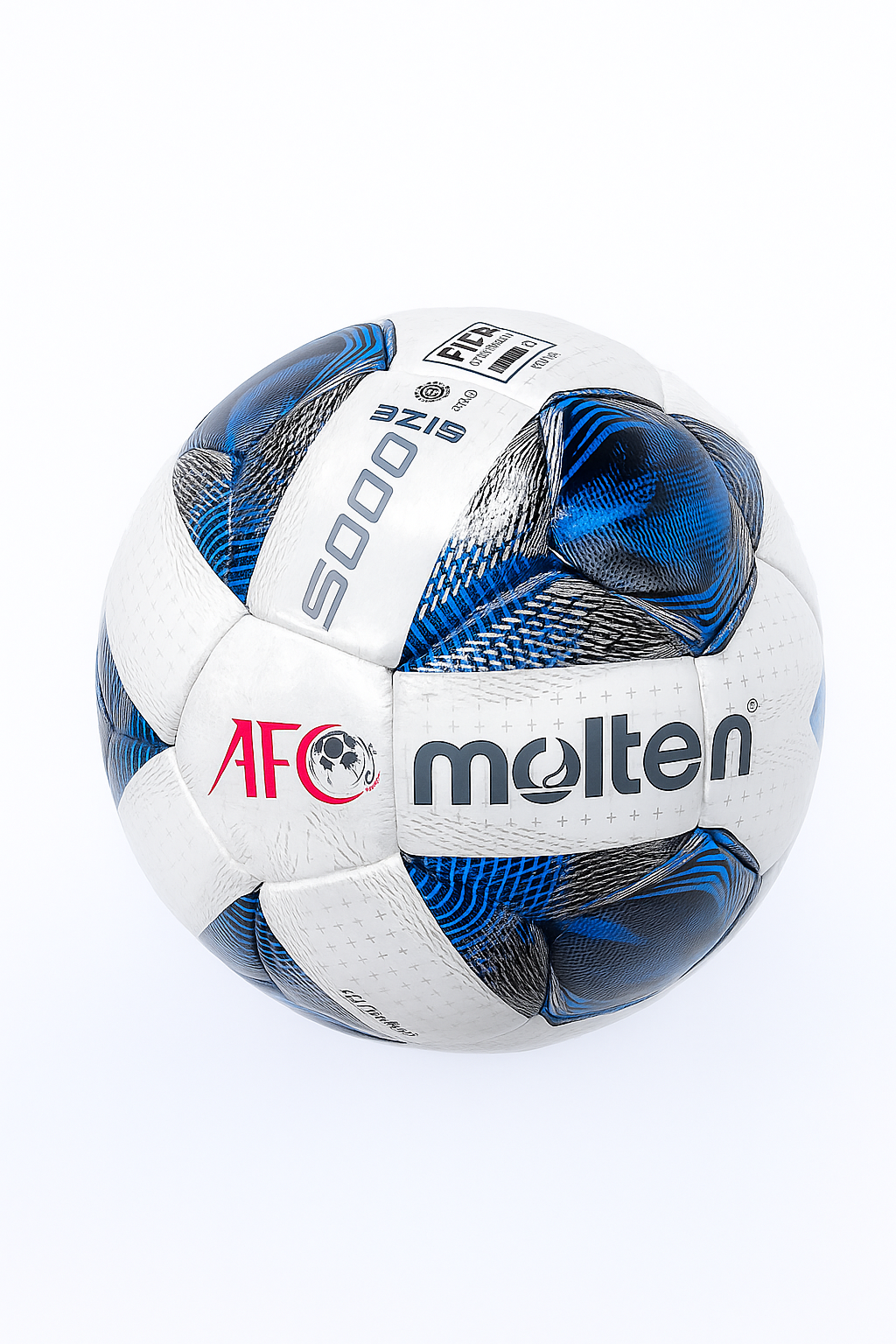 ⚽ توپ فوتبال Molten AFC 5000 سایز ۵ ⚽ ، این توپ حرفه‌ای با تأییدیه FIFA QUALITY PRO مخصوص مسابقات رسمی طراحی شده است 🌍 ، دارای پوشش مقاوم چندلایه و طراحی آیرودینامیک برای کنترل، دقت و سرعت بیشتر در ضربات 💥 ، ترکیب رنگ آبی و سفید، ظاهری مدرن و چشم‌نواز به آن داده است 💙 ، انتخابی عالی برای بازیکنان حرفه‌ای و عاشقان واقعی فوتبال 🔥