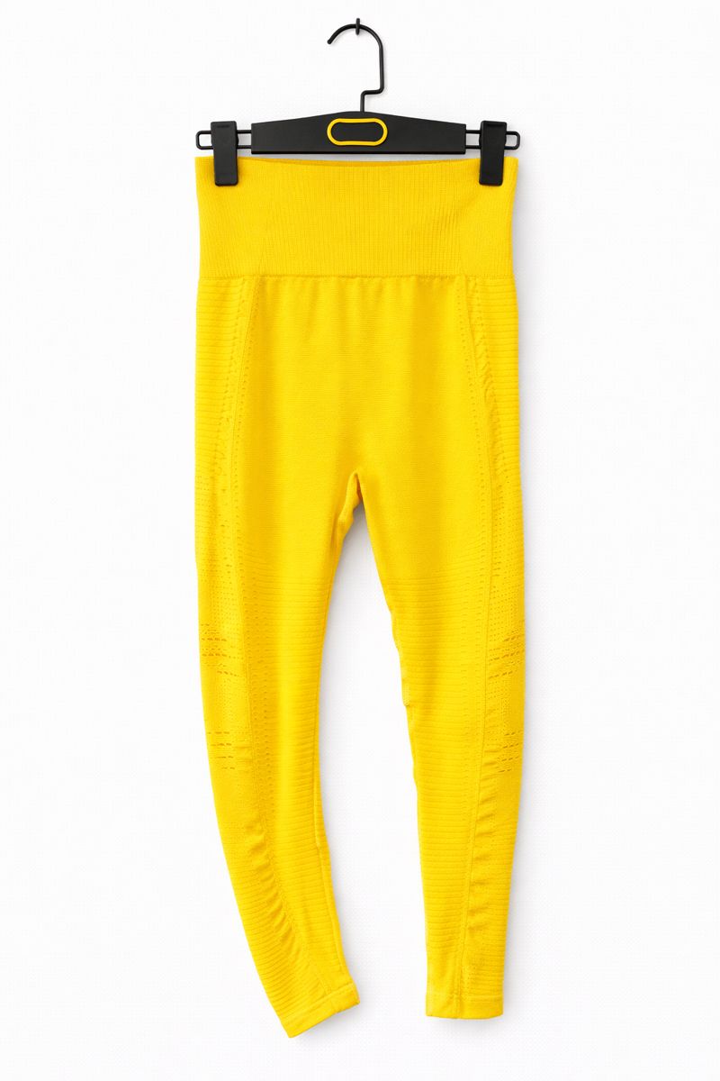 لگ ورزشی زنانه فاق بلند زرد کمر گنی وارداتی | لگ بدنسازی Seamless با پنل تنفسپذیر و کمر پهن